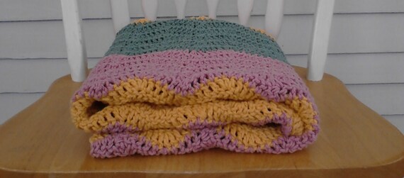 Cotton Blanket, Ripple Afghan, Crocheted Afghan, Throw, Baby Blanket